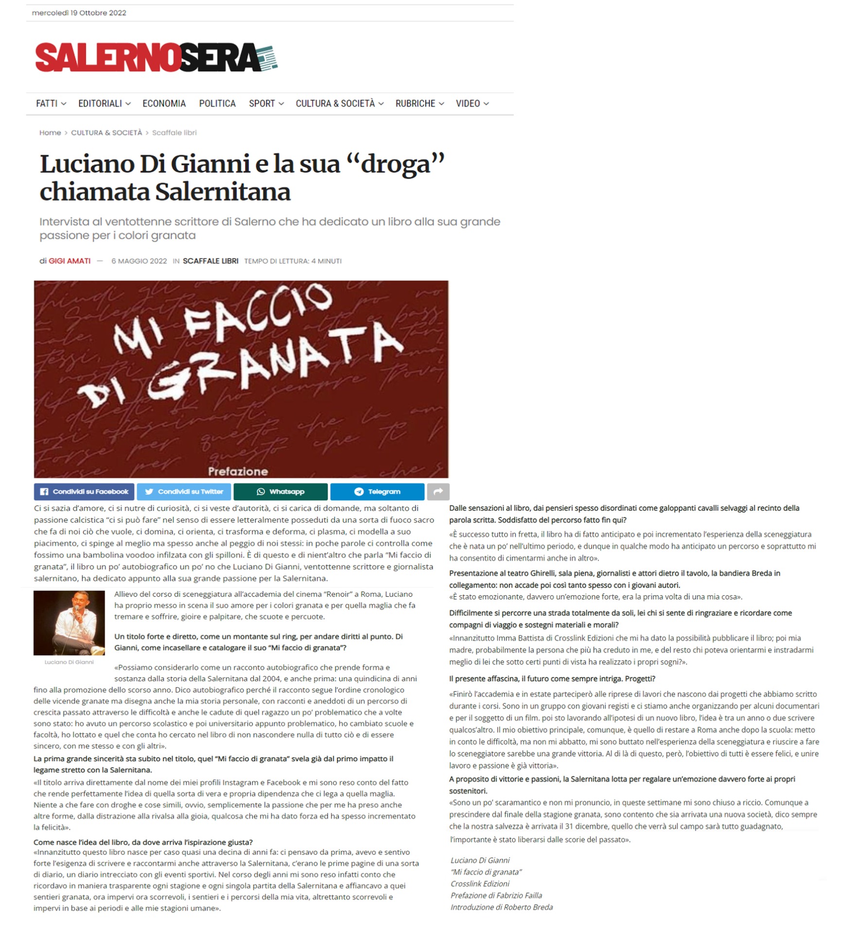 La passione per la scrittura e l'amore per la squadra del cuore